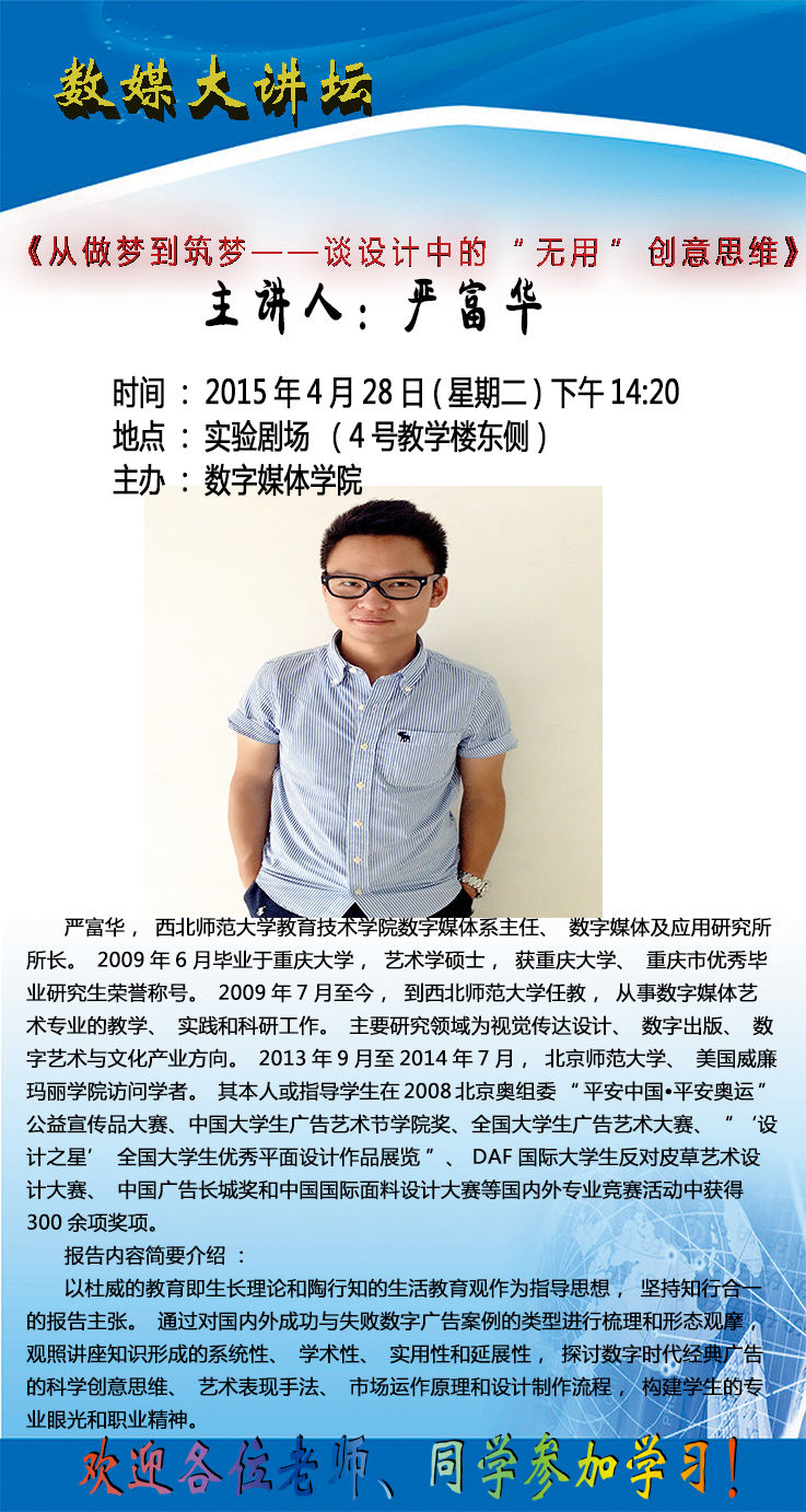 数媒大讲坛: 《从做梦到筑梦—谈设计中的“无用”创意思维》