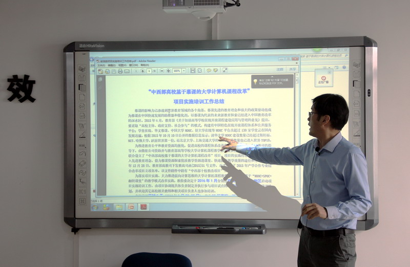 近年来,慕课(MOOC)先进的教育理念已渗透到世界教育领域的各个角落。在我国,高校作为在线开放课程体系和公共服务平台的主体受到了社会极大的关注。就此,李恒杰经理向与会老师以中国高校计算机教育MOOC联盟“中西部高校基于慕课的大学计算机课程改革”项目为例,讲解了慕课发展现状与应用前景。随后,李恒杰经理强调大学计算机课程改革在新时代新教育理念下面临的挑战、形势、成效与任务,号召相关教师在“互联网+”的时代背景下,要勇于探索和完善大学计算机课程体系,组织原授课教师积极建立公司课程建设团队,融合已有优质教学资源与研究成果,将教学实践与慕课结合在一起,鼓励在座教师发扬锐意进取、敢为人先的精神,在公司互联网+背景下的教学改革中先行一步,为公司计算机类公共课程教学改革提供技术保障,为公司转型发展做出贡献。