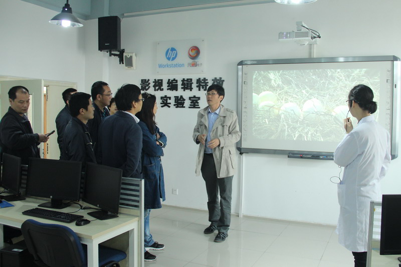 座谈会后,陆优公司郑小冬董事长一行在经理李恒杰及实验室负责人的陪同下参观了数字媒体实验教学中心。李恒杰教授和实验室负责人向各位来宾介绍了实验室硬件设备、教学以及实验实训开展情况。