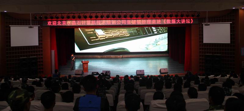 2016年9月9日,北京水晶石计算机技术培训有限公司张建铖总经理应邀走进《数媒大讲坛》,为院师生带来了一场题目为《数媒技术的行业发展》的报告,公司党总支书记陈小琴、经理李恒杰教授、副经理张毅老师和公司全体师生六百多人参加。讲座由经理李恒杰教授主持。