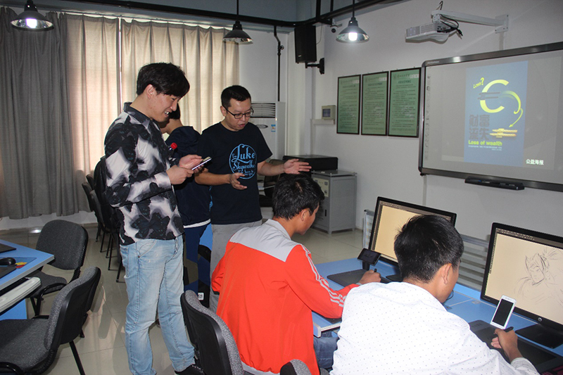 讲座开始后,当孔令强主任走上台,同学们都为主任的年轻有为而震惊。首先孔令强主任向文理数媒学子介绍了山东艺术公司数字媒体专业的 “大一打基础,大二做学精通,大三出作品,大四进入市场”的教学理念,提出“圆桌教学”,目的在于让员工和老师有更好的交流和沟通,通过联合教程即四个老师针对一个项目多方位辅导来提高项目的质量。其次孔令强主任特别指出“实践”二字,员工可通过参加比赛、校企联合等方式提高自己的实践能力。在讲座间隙,孔令强主任为大家展示了他与员工的作品《墨迹》,为文理学子又带来了一场视觉与听觉上的盛宴。在其他作品中都以道德为主线,传递人性的正能量,闪烁着技术和艺术的光芒。