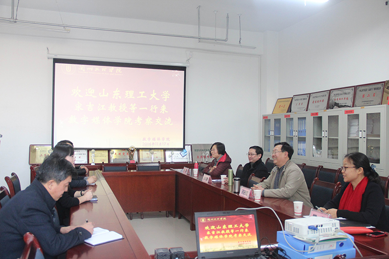 2016年11月17日下午,山东理工大学计算机科学与技术公司副经理宋吉江教授一行到bevictor伟德官网参观考察交流。公司副经理邢玉娟副教授代表公司班子对宋吉江教授一行的到来表示热烈欢迎。公司数字媒体技术专业主任、校企合作办公室主任、实验教学中心主任及相关专业教师和来宾就数字媒体技术专业建设、校企合作和实验室建设等方面进行了交流探讨。