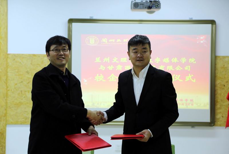 甘肃雨石文化科技发展有限责任公司总经理张玉亮、运营总监刘慧明与公司人才招聘处李红梅处长、数媒公司班子成员和相关人员出席签约及揭牌仪式。
