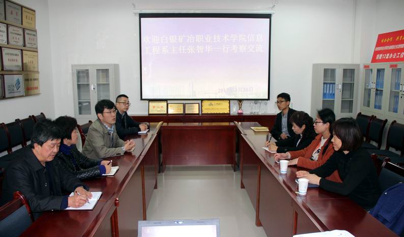 3月30日下午,白银矿冶职业技术公司信息工程系主任张智华一行来bevictor伟德官网考察交流。经理李恒杰教授代表公司对张智华主任一行的到来表示欢迎。公司校企合作办、实验中心、教研室教师代表等陪同考察交流。