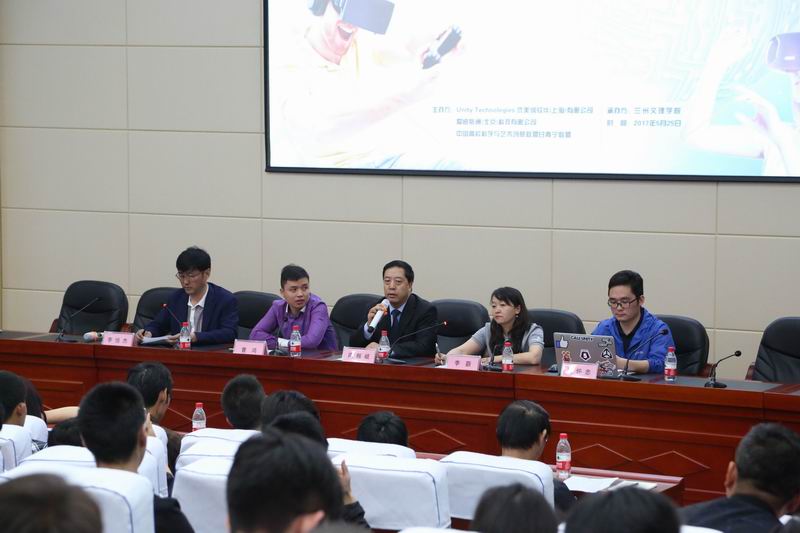 5月25日,“Unity VR/AR校园宣讲会(甘青宁峰会)暨2017甘青宁虚拟现实论坛”在伟德官网成功召开。此次论坛由Unity公司、爱迪斯通科技有限公司 、中国高校科学与艺术创意联盟甘青宁联盟三家主办,bevictor伟德官网承办。出席本次论坛的有Unity教育高级经理李蕻、Unity高级技术经理杨怀忠、南特数码公司董事长南振岐、北京爱迪斯通公司大区经理曹鸿等。活动吸引了省内外20余家高校及行业企业的各位领导、专家和老师以及bevictor伟德官网百余名员工参加。此次论坛由中国高校科学与艺术创意联盟副理事长、甘青宁分联盟理事长,bevictor伟德官网经理李恒杰教授主持会议。