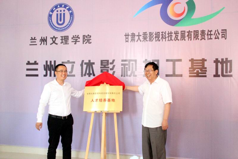 甘肃大乘实业有限公司董事长刘长东先生介绍了企业的基本情况和发展规划。双方一致认为,公司的发展离不开企业的支持,企业的发展也需要公司的人才支撑,双方通过建立校企合作的关系可以达到“优势互补,合作共赢”的目的。签约仪式结束后,与会领导在伟德官网大乘影视制作基地参加了双方“人才培养基地”和“影视制作创客空间”的揭牌仪式。