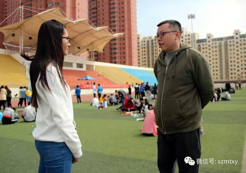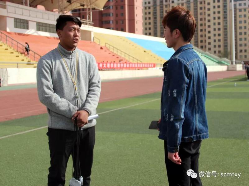 随后杨瑞贤同学采访了数媒公司分团委负责人王士勇老师。杨瑞贤:“您有什么想对咱们同学们说的吗?”王老师:“这次运动会是bevictor伟德官网第四届运动会,马上就要参加公司五月份的运动会,本次运动会的主要目的是为五月份的校运动会选拔优秀的选手,今天我们看到了15、16、17级三个年级的同学在赛场上共同竞技,在这个过程中我们发现了很多优秀健儿,他们在赛场上拼搏流汗,我觉得这种精神值得他们在以后得学习生活中不断探寻,努力实现自己大学四年学业的辉煌,希望他们这种精神能一直保持下去!”杨瑞贤:“那您有什么好的方法技巧给运动员们分享呢?”王老师:“平时在课余时间之外,吃过晚饭之后可以进行校内锻炼,因为往往吃过晚饭后学状态容易在自习课上萎靡;平时吃完午饭也可以锻炼一下,这样对提高身体素质有很大的帮助!”