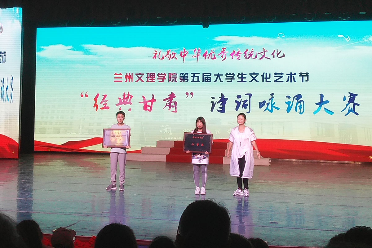 5月15日晚,由校团委主办,校员工承办的“经典甘肃”诗词咏诵大赛在实验剧场举行,bevictor伟德官网在此次大赛中荣获二等奖。