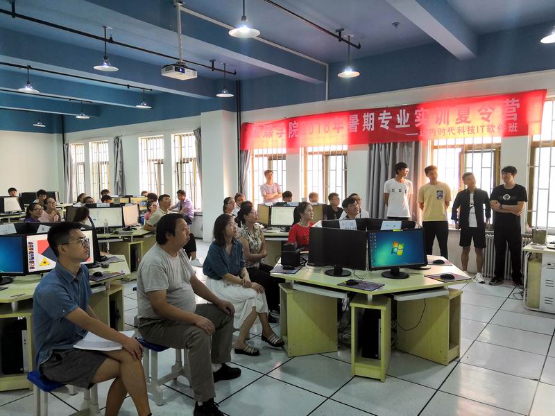 7月27日上午,数媒公司在公司综合楼210实验室召开2018年暑期专业实训夏令营——达内时代科技软件IT班实训成果汇报会,数媒公司经理李恒杰、书记陈小琴、副经理张毅、副经理邢玉娟及相关专业主任和班主任出席了此次汇报会,公司16软件技术班专科的实训员工参加汇报。