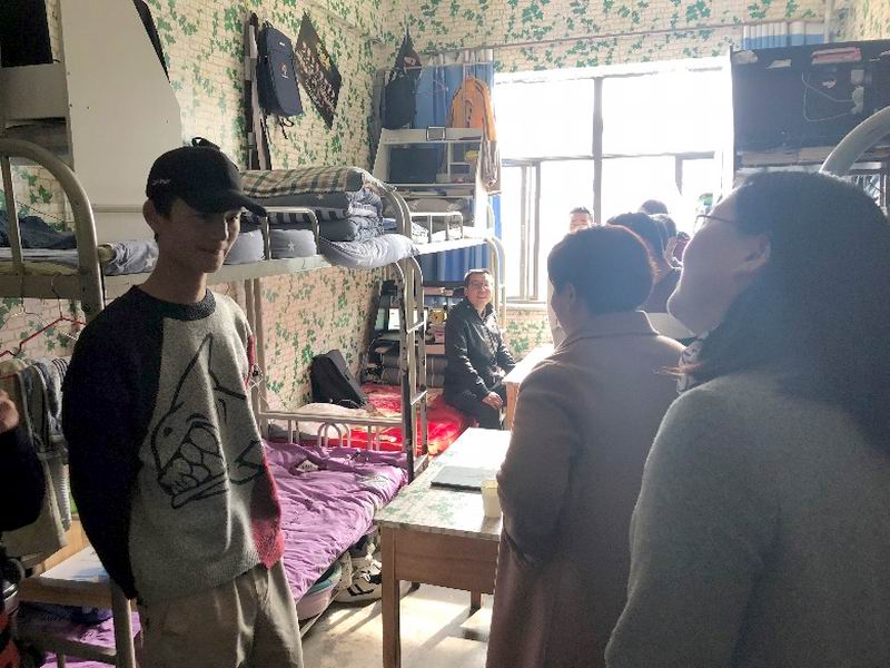 中午1点半,三名老师先来到了10-516宿舍,对宿舍内精美的壁纸赞叹不已,然后与同学们聊起了宿舍安全、生活习惯等话题。其中不乏时不时的玩笑,让所有同学都不禁哈哈大笑起来。同学们在与老师谈话聊天的过程中说出了自己对文明宿舍的理解和如何践行文明行为提出自己的看法。最后,由于下午同学们还要上课,老师们为免打扰同学们休息,便要离开宿舍同学们对老师的到来表示了再一次的感谢。