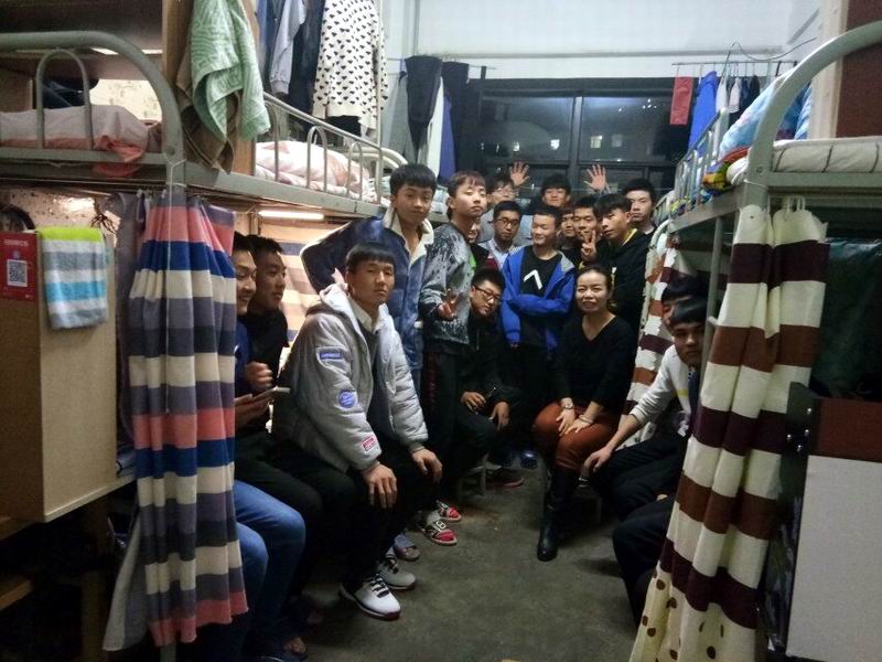 11月6日下午,软件工程2班男生宿舍518邀请班主任曹晓丽等三位老师到宿舍做客。曹老师与同学们进行了轻松愉快的谈话。询问同学们的生活是否习惯,提醒同学们降温要注意保暖。曹老师特别注意宿舍供暖问题,强调宿舍长要注意宿舍暖气是否有漏水和不热的情况,一旦发现,一定要及时联系楼管和后勤工作人员维修。