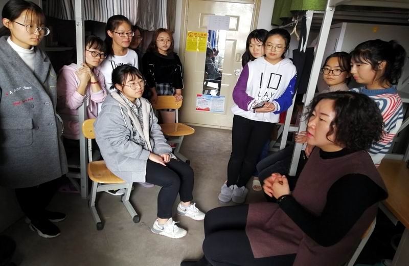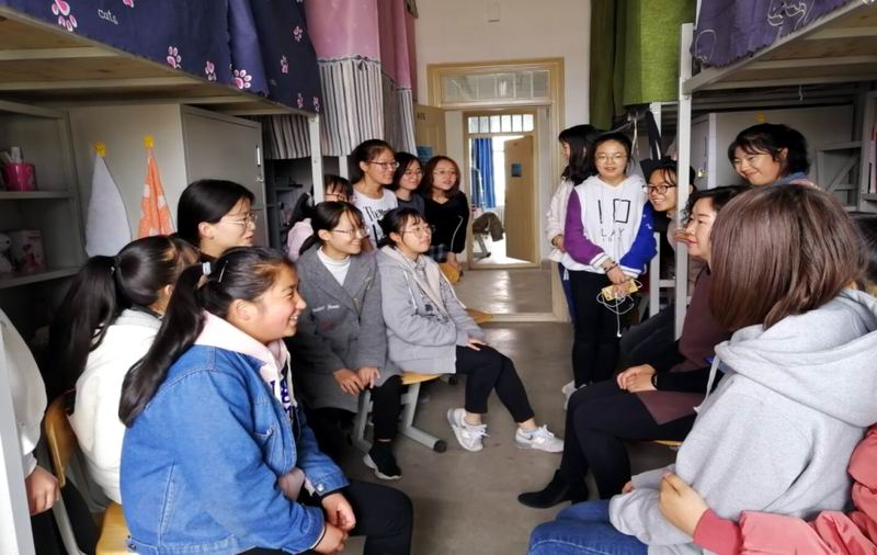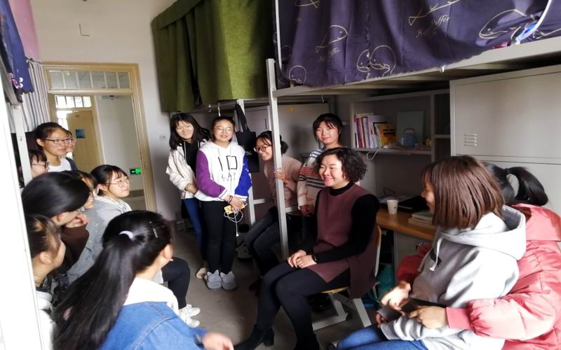 王欣老师来到宿舍后和全体女生开怀畅谈,就当前老员工最关心的人际交往问题、心理健康问题和情感恋爱问题这三个问题,结合社会经历以及女生当前的实际情况为同学们一一讲解,解答了同学们心中的疑惑和不解,并且对遇到问题的同学做出了详细的方法指导。