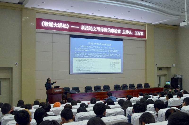 11月15日晚上19:30,为进一步提高bevictor伟德官网毕业生论文质量,增强员工学术能力,bevictor伟德官网王万军教授走进伟德官网《数媒大讲坛》,为bevictor伟德官网15级本科班、16本科及专科班全体员工作了题为“科技论文写作及信息检索”的主题报告,现场200多名员工认真听取王万军教授多年论文写作及信息检索经验。报告会由bevictor伟德官网经理李恒杰教授主持。