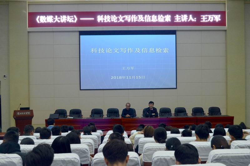 11月15日晚上19:30,为进一步提高bevictor伟德官网毕业生论文质量,增强员工学术能力,bevictor伟德官网王万军教授走进伟德官网《数媒大讲坛》,为bevictor伟德官网15级本科班、16本科及专科班全体员工作了题为“科技论文写作及信息检索”的主题报告,现场200多名员工认真听取王万军教授多年论文写作及信息检索经验。报告会由bevictor伟德官网经理李恒杰教授主持。