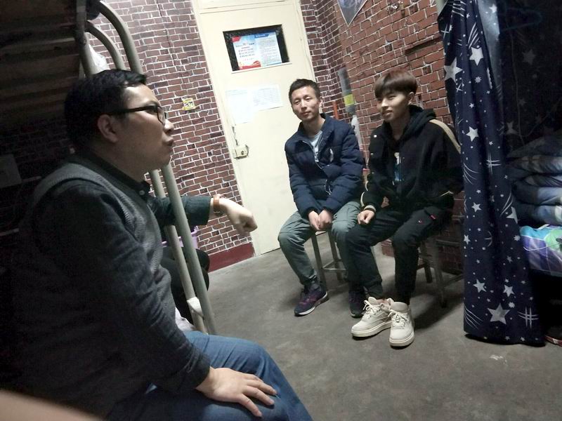 为积极响应公司创建文明校园的号召,2018年11月19日晚上20:30分,数媒三班的马少斌老师在班长李强,组织委员王文虎的邀请下,来到本班的男生宿舍10-525做客,谈心。数媒三班男生参与了此次活动。
