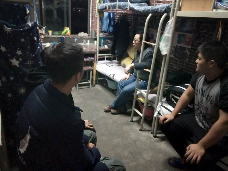 马少斌老师来到宿舍后和男生开怀畅谈,就当前老员工最关心的人际交往问题、心理健康问题和就业问题这三个问题,结合自身经历以及男生当前的实际情况为同学们一一讲解,解答了同学们心中的疑惑和不解,并且对遇到问题的同学做出了详细的方法指导。