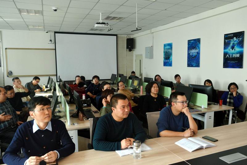 会上,邢玉娟副教授首先分享了自己在说话人识别方面的研究成果,主要介绍了语音特征提取、模型构建和模型检测等。紧接着,黄珍副教授介绍了基于深度学习的unity虚拟人机对战系统,该系统主要基于unity平台,采用改进深度学习TensorFlow框架和近端优化策略(proximal policy optimization)训练虚拟游戏模型,使得模型具有更高的灵活度,进一步优化了人机对战的体验。王万军教授根据多年从事不确定性理论研究的经验,介绍了不确定信息处理的相关算法。张成文副教授介绍了虚拟现实、全景拍摄、虚拟旅游以及更加深层次的交互方式。王士勇老师也对自己这一年的科研和工作做了总结,对各位老师表达了新的一年的祝福和期许。谭萍副教授介绍了员工项目“文理小袋鼠”小程序。