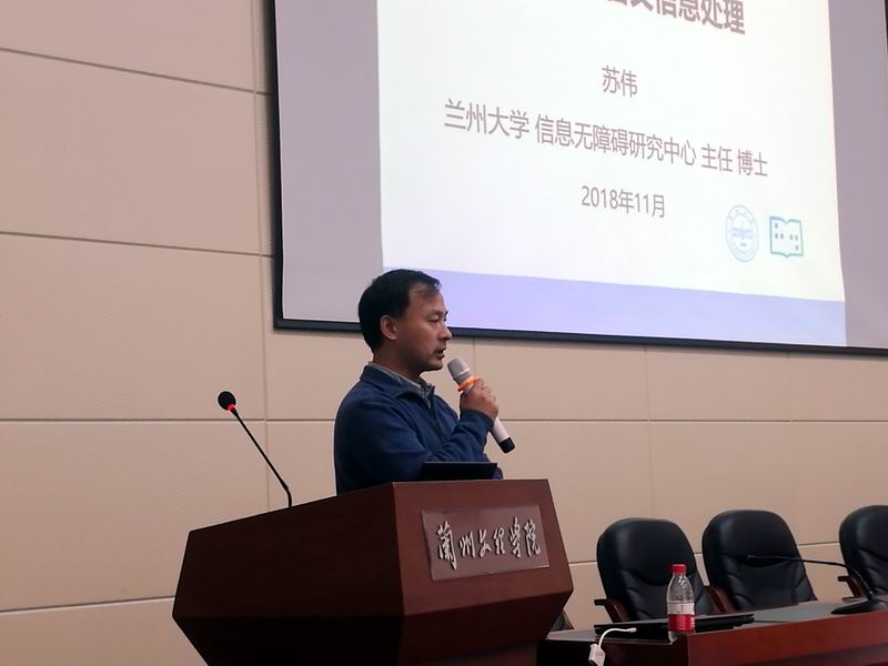报告会上,苏伟博士首先分析了盲文信息处理的障碍之处,结合自己多年从事盲文信息处理研究的经历,重点讲解了信息无障碍在我国的重要地位,使同学们清晰的认识到信息无障碍科研工作的重要性。随后,苏伟博士通过介绍兰州大学利用大数据和人工智能技术研发盲文信息处理关键理论及技术,实现了汉盲、英盲、数理化公式盲文、乐谱盲文翻译及信息处理,创建了中国盲文数字平台,使公司员工了解到无障碍信息处理技术在人工智能开发中的重要作用。最后,苏博士为大家讲解了人工智能尤其深度学习在盲文及自然语言处理方面的应用方法,希望同学们能够努力学习专业知识,将自己所学结合到盲文信息处理的领域中。