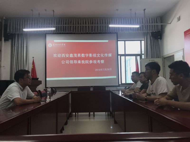 随后,王蒙总经理高度评价了公司的办学特色和办学理念,简要介绍了西安鑫茂昇字影视文化传媒公司的基本情况。他表示,企业将与公司加强沟通对接,围绕员工实习就业、实训、产学研项目建设等方面,展开深入交流探讨,为下一步校企双方合作奠定良好的基础。