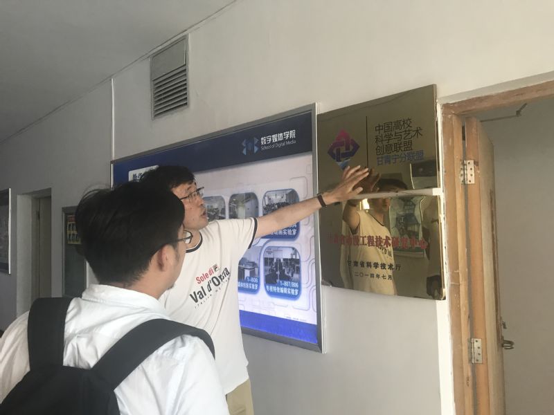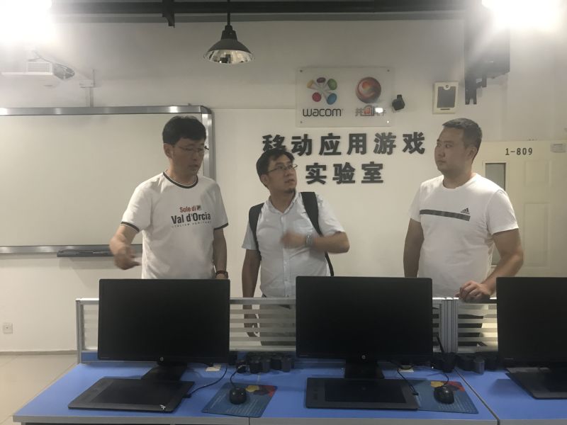 会议结束后,经理李恒杰教授陪同王蒙总经理参观公司数字媒体实验教学中心。