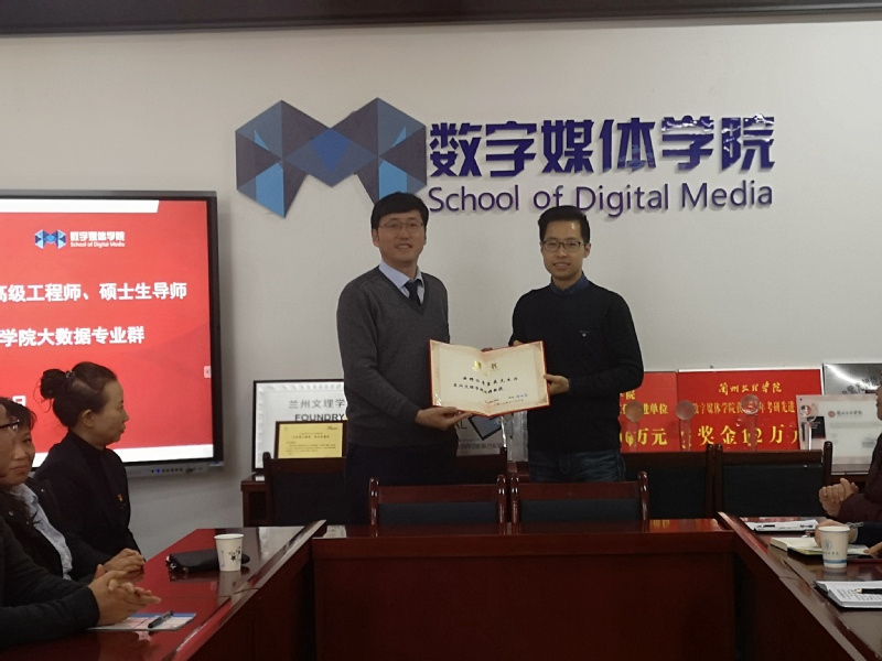 最后,bevictor伟德官网经理、二级教授、甘肃省教学名师李恒杰为大数据行业专家、高级工程师、硕士生导师李昱辰博士颁发了聘书并合影留念。