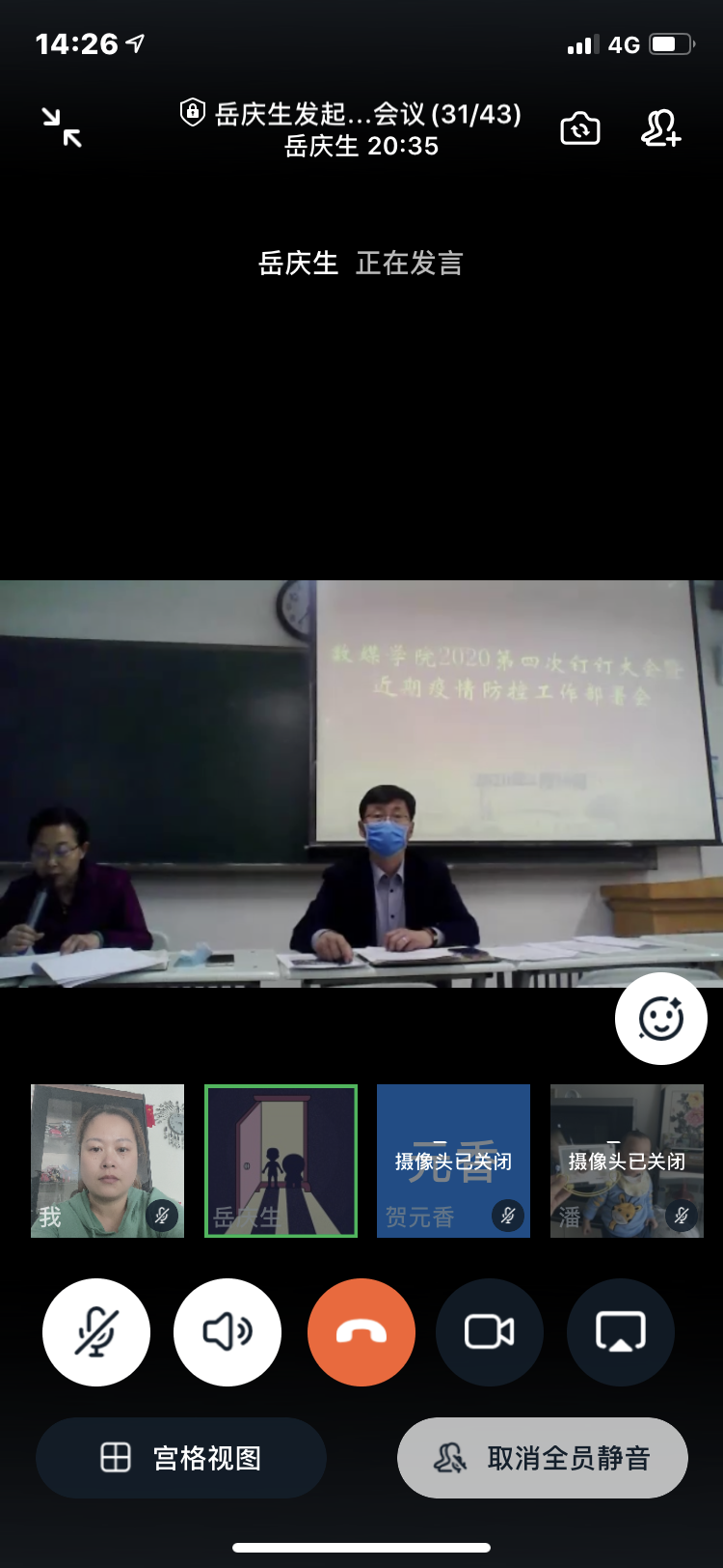 bevictor伟德官网于4月30日下午14点在2号教学楼412教室,使用陇政钉在线平台召开2019-2020第二学期第四次钉钉大会暨近期疫情防控工作部署会。会议由李恒杰经理主持,公司全体坐班人员到场参加,其他人员同步在家参加钉钉视屏会议。