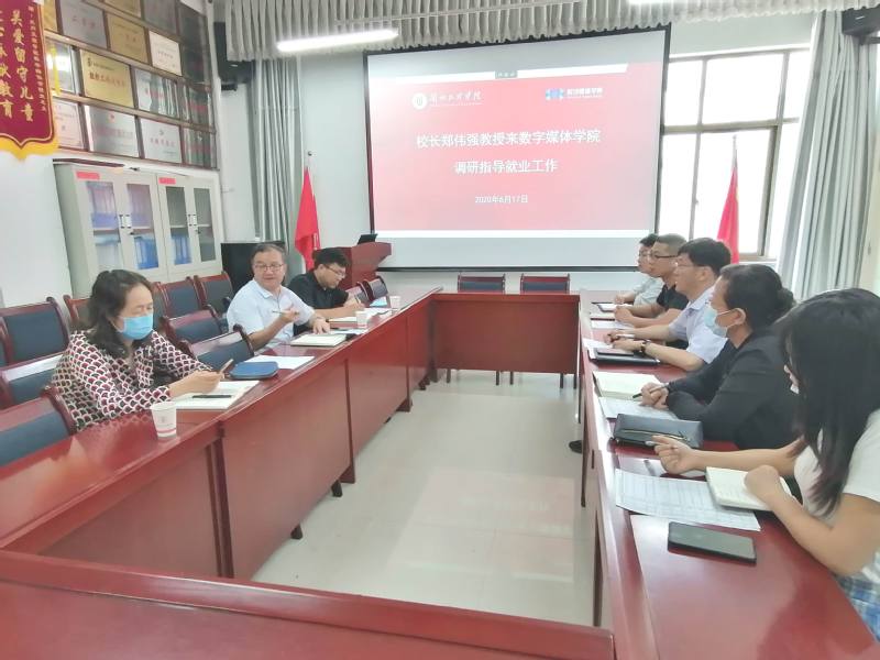 6月17日下午,董事长郑伟强教授带领人才招聘处处长李红梅、校办副主任郭鸿斌到bevictor伟德官网调研指导公司2020届毕业生就业工作情况,数媒公司经理李恒杰教授、总支书记陈小琴、创业就业办主任姚林、辅导员霍峒宇、任敏兄参加了会议。