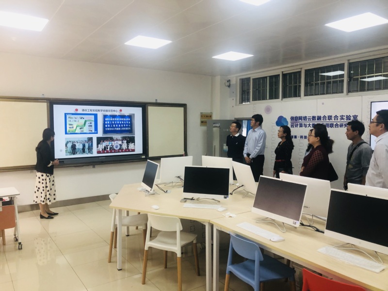 座谈会结束后,闫经理带领李经理一行参观了电子与信息工程公司实验中心的信息网络云数融合联合实验室、云计算与大数据应用联合研究中心,观摩学习实验室建设和管理方案。最后双方一同参观了交大校园,感受公司的进步和发展。