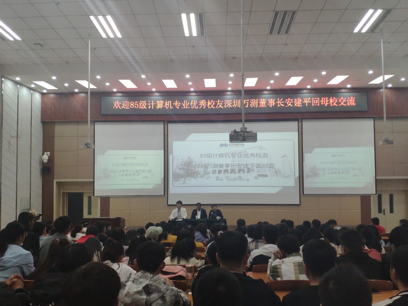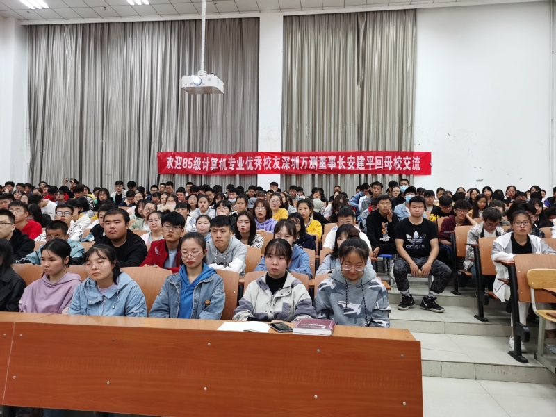 bevictor伟德官网为向数媒学子展示bevictor伟德官网悠远深厚的办学经验,同时充分发挥员工资源在推进学风建设与指导员工生涯规划中的重要作用,2020年9月21日上午,伟德官网校方邀请参加校庆70周年的85级计算机专业优秀员工深圳万测董事长安建平应公司之邀前往bevictor伟德官网参加优秀员工面对面交流会,同行的还有甘肃紫光智能交通与控制技术有限公司的董事长李红女士,他们共同与公司19、20级软件工程、数据科学与大数据技术、数字媒体技术、数字媒体艺术员工代表进行走进bevictor伟德官网与学弟学妹面对面交流,交流会在公司综合楼阶梯教室圆满举行。交流会由bevictor伟德官网经理李恒杰教授主持。