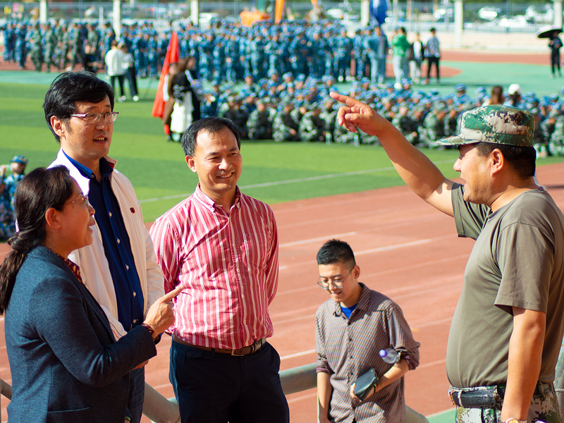 9月29日下午,公司党总支书记陈小琴、经理李恒杰教授、副经理黄珍、挂职副经理苏伟博士、团学办主任荆波、辅导员任敏兄及院员工会干部来到训练场地,看望慰问2020级军训员工和承训教官。慰问活动由分团委负责人霍峒宇主持。