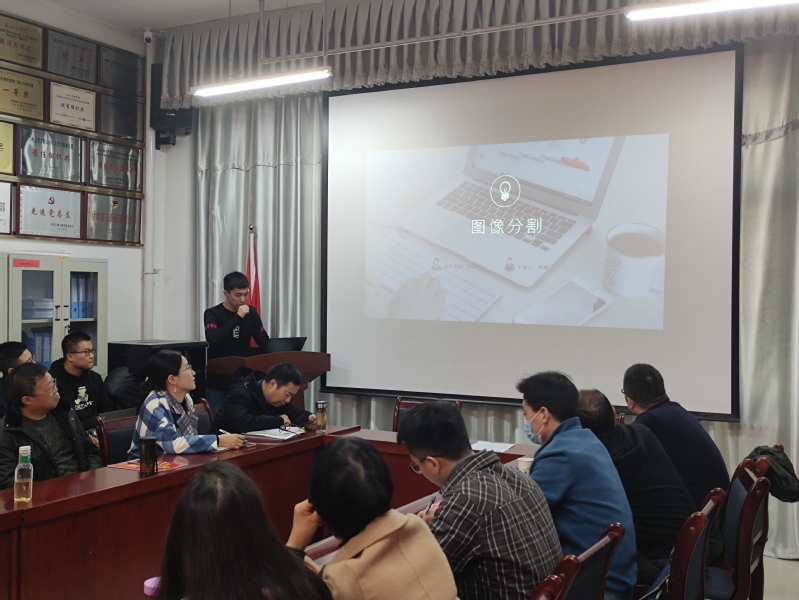 展示会上,18大数据班的员工代表依次展示了自己的实训成果,两位同学依次从分割网络(U-NET)、图形分割算法、SSD算法分析与SSD目标检测几个方面简单展示了这三周实训的成果。最后由实训教师刘昌荣对这次实训的成果展示做了点评与总结。