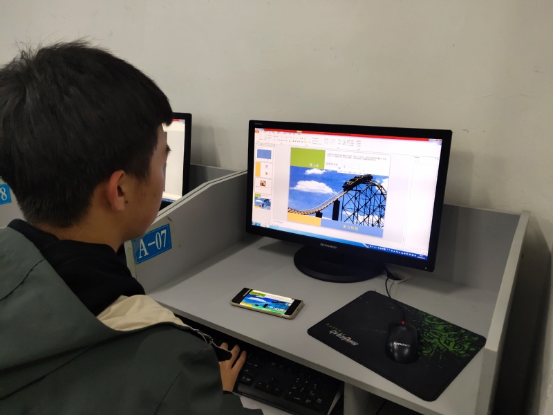 比赛中,同学们争分夺秒去完成每一张PPT,在原PPT的基础上加以创新,风格各异,形式多样,脸上充满了认真和严肃。随着时间的流逝,比赛的帷幕正渐渐落下,一个又一个同学渐渐完成了他们的制作。
