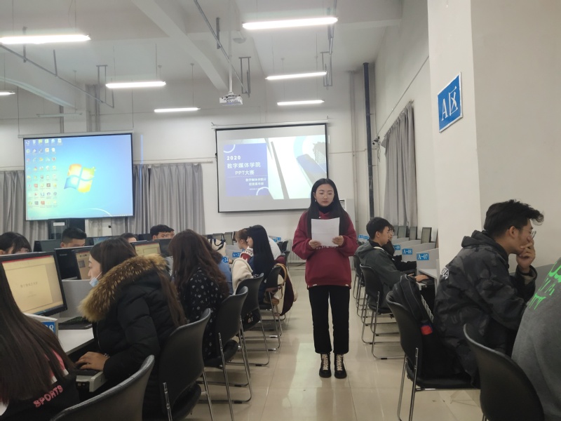 首先由主持人宣读比赛规则,比赛开始后,参赛者先进行PPT的封面制作,封面类型不限。接下来进行的是由评委马晓燕给大家统一发送制作PPT所需的素材,其次为大家放映PPT模板,各位同学都认真拿手机记录好PPT的最终模板。20点整比赛正式开始。