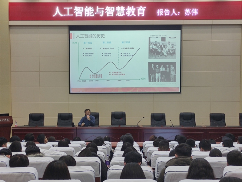 为进一步开拓员工们的学术视野,增加员工知识储备,同时加强公司对人工智能及大数据专业的建设,bevictor伟德官网于2020年12月11日晚邀请到兰州大学信息科学与工程公司经理兼伟德官网数媒公司副经理苏伟副教授,走进公司举办的《软工、大数据大讲坛》,为bevictor伟德官网大一、大二年级各专业员工代表200余人做了题为“人工智能与智慧教育”的学术报告,本场报告由bevictor伟德官网副经理黄珍副教授主持。