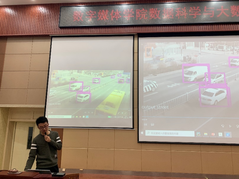 随后,在刘昌荣老师的前期指导下,18级大数据班李瑞、柳博文、郝强、潘伟成四位同学对为期三周关于深度学习之计算机视觉的实训成果进行展示,并得到全场一致赞扬。