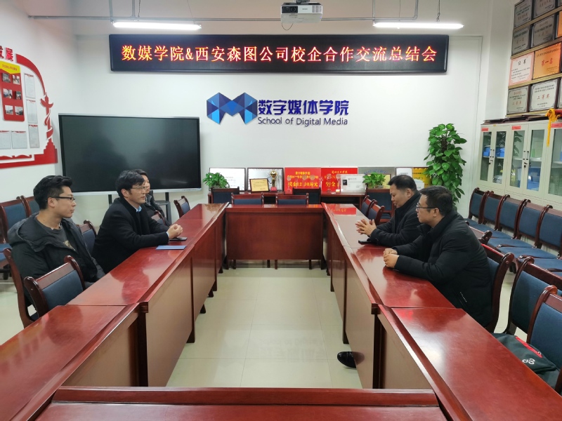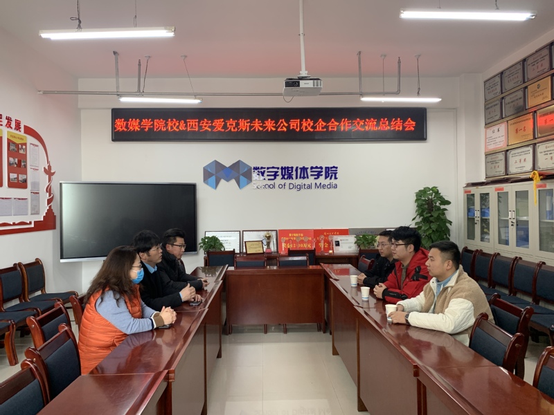 2020年12月28日,30日数媒公司通过线下线上钉钉会议方式,召开校企合作交流总结暨实习安全会议,参会单位有西安森图网络科技有限公司、西安爱克斯未来文化科技有限公司、北京水晶石等公司相关负责人,数媒公司经理李恒杰、副经理黄珍、校企合作办蔺国梁、分团委负责人霍峒宇、创业就业办姚林,会议由李恒杰经理主持。