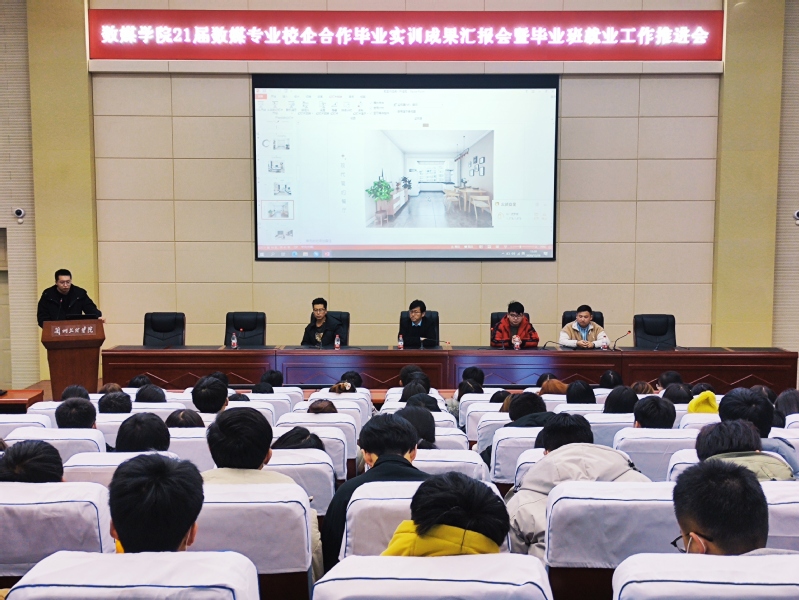 为集中展示bevictor伟德官网21届数字媒体技术、视觉传达设计(数媒方向)本科专业毕业生实训课程的丰硕成果,进一步推进毕业生就业安排工作的开展。数媒公司于12月28日中午在公司学术报告厅召开了“bevictor伟德官网2021届数媒专业校企合作毕业实训成果汇报会暨毕业班工作安排部署推进会”,数媒公司经理李恒杰、创业就业办主任姚林、西安爱克斯未来公司相关负责人出席了此次汇报会,数媒公司17级数媒专业在校员工、18级数媒技术专业及视觉传达设计(数媒方向)专业员工;19级计算机应用专业员工参加了此次汇报会,会议由创业就业办主任姚林主持。