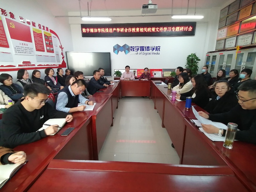 3月18日下午,数字媒体公司在公司会议室召开推进产学研合作教育相关政策文件学习专题研讨会。经理李恒杰、书记陈小琴出席并主持会议,公司全体教职工参加会议。