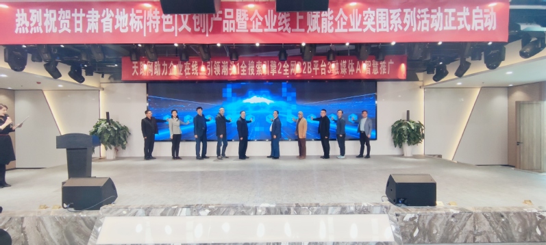在启动仪式中,经理李恒杰教授、甘肃省电商公共服务中心负责人李强及其他单位代表10人,一起按下了启动键启动并合影留念。