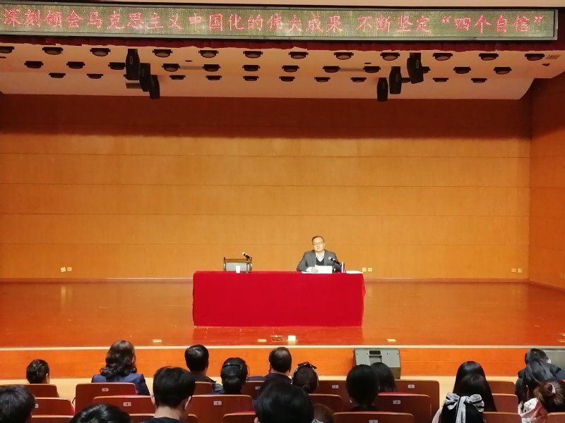 为深入贯彻落实习近平总书记在全国党史学习教育动员大会上的重要讲话精神和公司党委党史学习教育工作部署,4月28日下午,公司党委副书记、董事长郑伟强教授以“深刻领会马克思主义中国化的伟大成果,不断坚定'四个自信'"为题为党委(公司)办公室、审计处、教师工作部(人事处、离退休工作处)、发展规划处、教学质量监测与评估中心及bevictor伟德官网全体党员、入党积极分子、师生代表共计160余人进行了党史学习教育宣讲。宣讲会由公司党总支书记陈小琴主持。