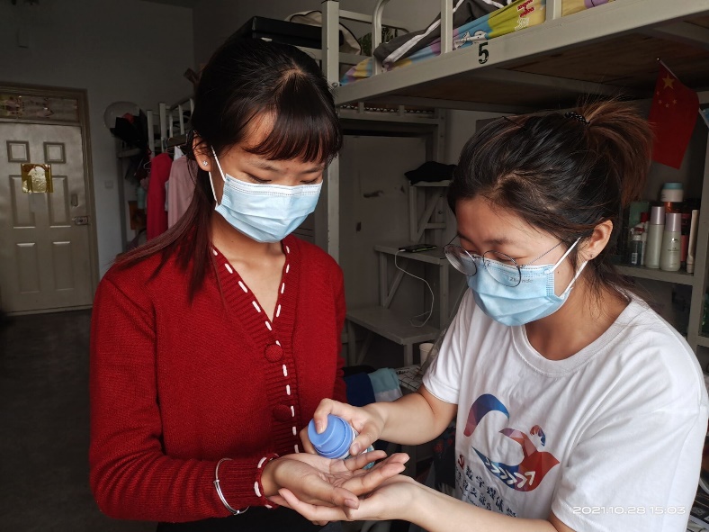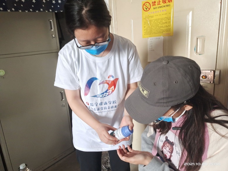 党员和入党积极分子在严守不串宿舍、不与同学接触的前提下,通过在自己所在宿舍为同学们讲解七步洗手法、口罩正确佩戴方法、带领同学观看疫情防控宣传视频等措施,引导同学正确对待并积极参与疫情防控。