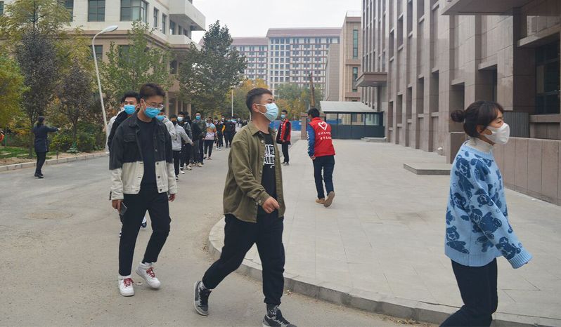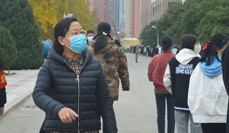 党员志愿者们在核酸检测时不惧寒冷,积极引导,维持秩序,为同学们的健康保驾护航,反复喊着“请戴口罩”、“请保持距离”的温馨提示。