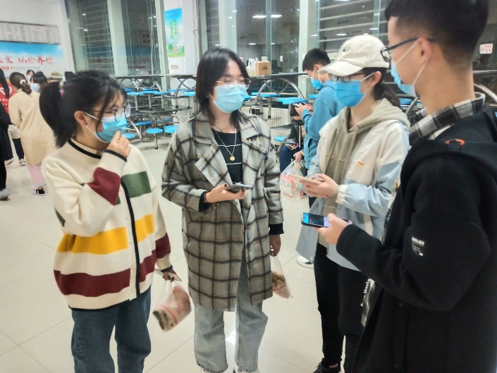 党员志愿者们在思源楼员工第二食堂一楼,面向全校同学开展疫情防控知识宣传,提醒大家文明用餐,注意就餐卫生:做好个人防护,排队购餐时遵守前后左右间隔1米的防控要求;做到不在食堂用餐,购餐后不逗留。