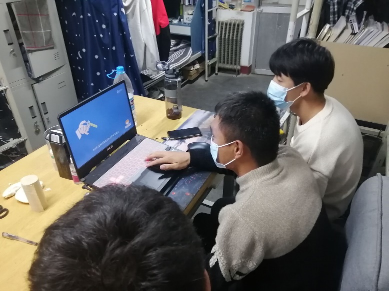 积极分子谢利鹏、陈明山同学组织宿舍其他同学观看疫情防控宣传视频,学习疫情防控知识,引导宿舍同学养成勤洗手、常通风的好习惯。