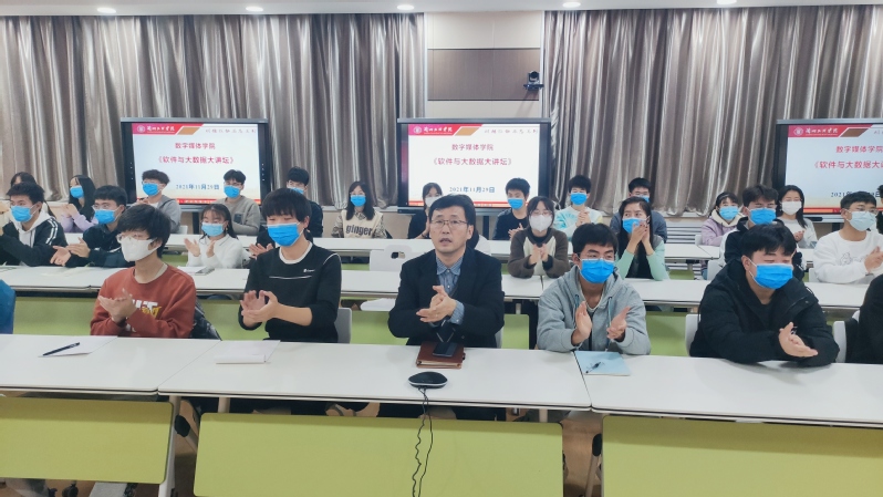 为进一步向员工们普及专业知识,提升专业理解,助力软件工程、数据科学与大数据技术专业群建设,11月29日晚bevictor伟德官网在2-802教室举办了主题为《大数据前沿应用及Hadoop生态系统解析》的学术讲座。此次讲座邀请到学佳澳的高级讲师吴松为同学们进行报告。受疫情影响,此次报告采用线上线下同时进行的方式,bevictor伟德官网组织21级软件工程、数据科学与大数据技术专业同学线下参加,19、20级员工自发进行线上学习参与。本场报告由bevictor伟德官网经理李恒杰教授主持。