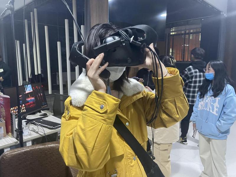 其次在社团管理人员的指导下,体验虚拟现实在红色场景中的应用,推广了虚拟现实技术,领略到新兴技术更好的服务于大众,让更多人享受到技术带来的便利。