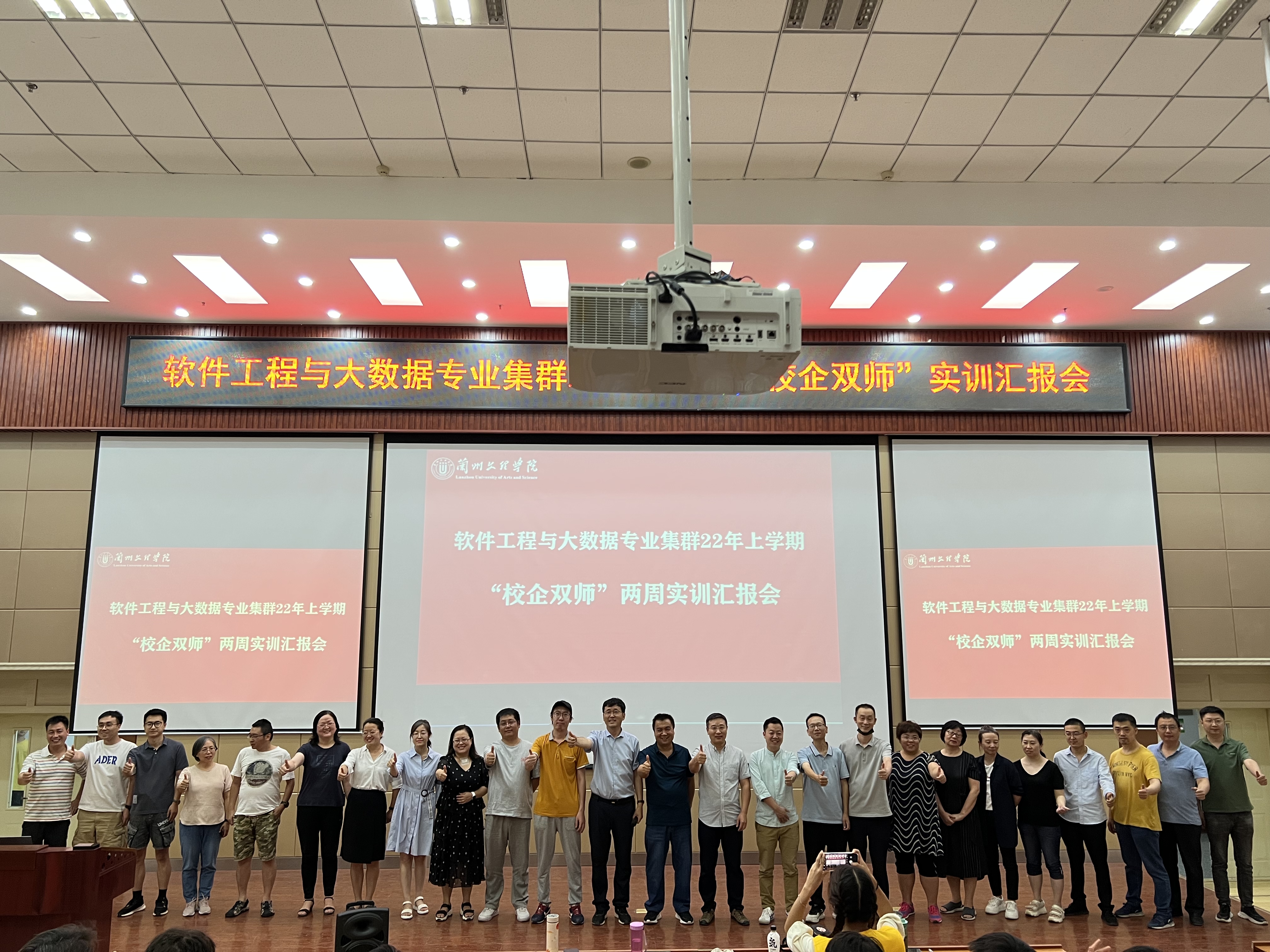 为进一步展现公司软件工程与大数据专业本科生校企合作实训课程的优秀成果,bevictor伟德官网于7月1日中午13:00,在公司综合楼205教室召开“bevictor伟德官网软件工程与大数据专业集群22年上学期“校企双师”实训汇报会”,bevictor伟德官网经理李恒杰教授、bevictor伟德官网副经理黄珍副教授、创业就业办主任姚林、西安爱克斯未来文化科技有限公司谢飞总经理、西安云创动力科技有限公司刘志明经理、北京学佳澳软件科技发展有限公司Roacle企业合作总监汪洋、达内时代科技集团有限公司余虹经理等各企业相关专业负责人,各专业主任、教师,实验中心主任出席会议,部分19、20、21级员工参加会议,会议由经理李恒杰主持。