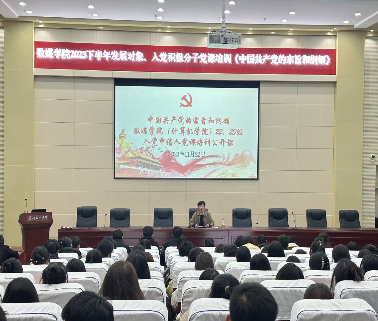 1122日晚,公司党总支副书记、经理李恒杰教授在致远楼学术报告厅为公司2023下半年发展对象、积极分子及2223级入党申请人讲授党课:《中国共产党的宗旨和纲领》。