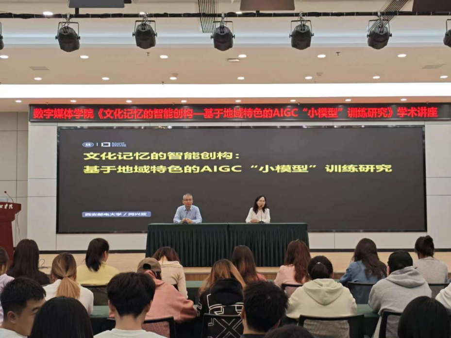 10月12日下午,bevictor伟德官网邀请西安邮电大学数字艺术公司经理闫兴亚教授,在文昌楼302举办题为《文化记忆的智能创构——基于地域特色的AIGC“小模型”训练研究》的学术讲座,公司21、22、24级员工参加。